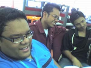 sambil menunggu akak joyah bank in duit, aku pergi cari parking y ada... aku ternampak satu subjek y mengcungkil memori lama aku... setelah berfikir buat sejenak, aku teringat dia adalah berkas cikgu math semasa aku form 4 cikgu amir katanya... setelah beberapa tahun berlalu, dia masih juga begitu, dgn happy go lucky dan kekurangan populasi rambut di residen kepala... haha... lama x dengar berita.. katanya kini sedang mengajar di KIPSAS kuantan... belajar di mana , jurusan apa perkara biasa semasa sesi 'tukar fikiran'... tanpa disangka sangka abang iparnya mengajar kat UMP jgk... pitam lagi sekali... siapa gerangannya..?? syaril dari fakulti meki tu ke..?? hmm.. sapa la y x kenal subjek y dimaksudkan tu... hahaha apalagi, kita org keluarkan lah bakul2 dan daun kelapa y ada untuk mengayam ketupat... sempat beberapa dozen...